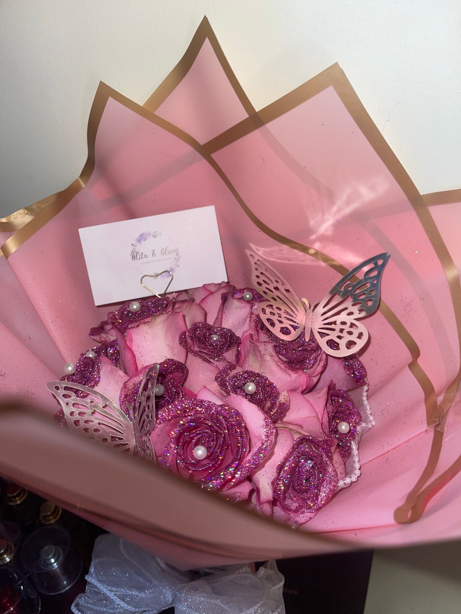 Glitz n Glam Bouquet was founded from a passion for creating elegant, handcrafted arrangements that bring lasting joy. What began as a love for designing beautiful, glittering bouquets has grown into a brand dedicated to celebrating women and special moments with style and meaning.